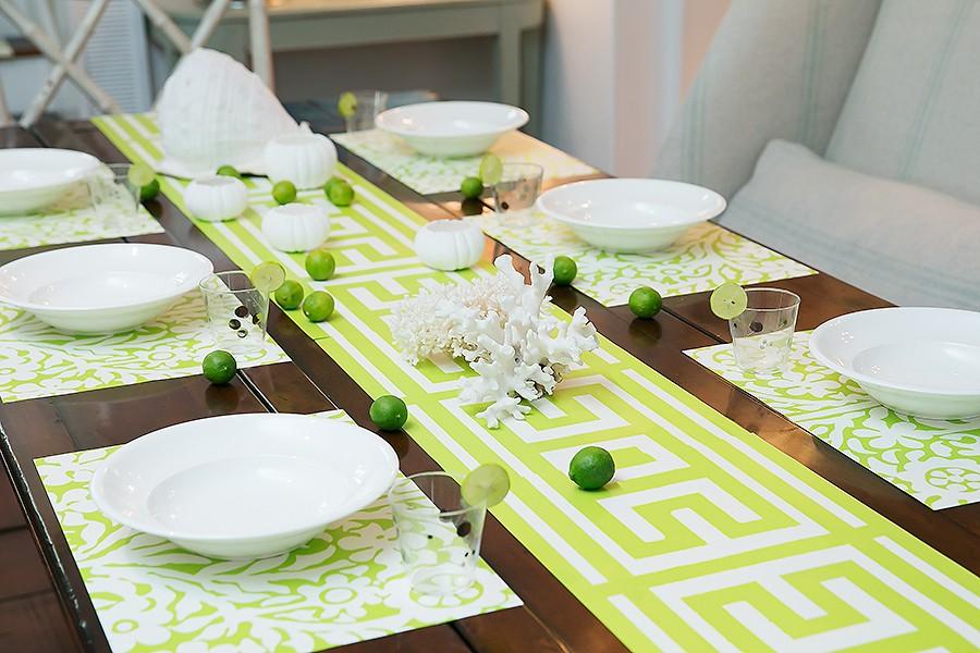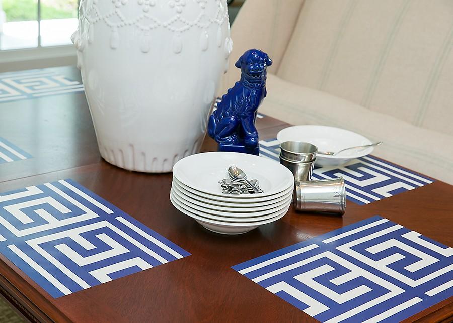 Classic greek key looks smart and fresh. Try this pattern end to end as a runner down the center of your table.