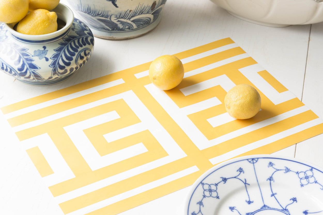 Classic greek key looks smart and fresh. Try this pattern end to end as a runner down the center of your table.